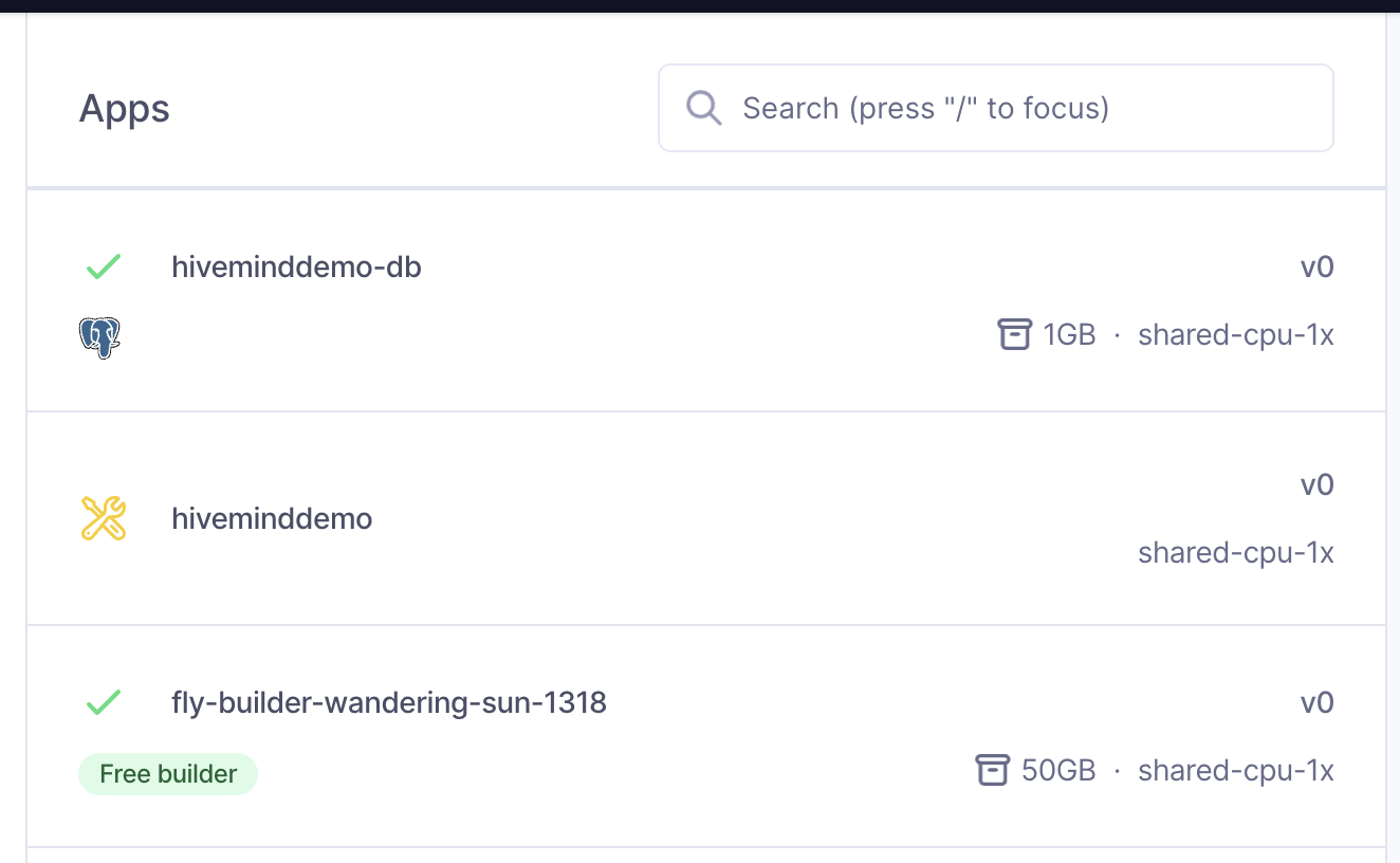 When your DB is deployed correctly, you'll see it in the Fly.io dashboard: